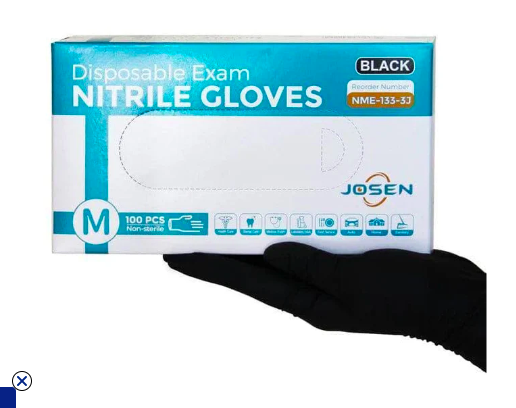 Black Josen Nitrile Examination Powder Free Gloves, 3.5 mil, Black