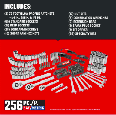CRAFTSMAN Standard (SAE) and Metric Mechanics Tool Set with Case (256-Piece)